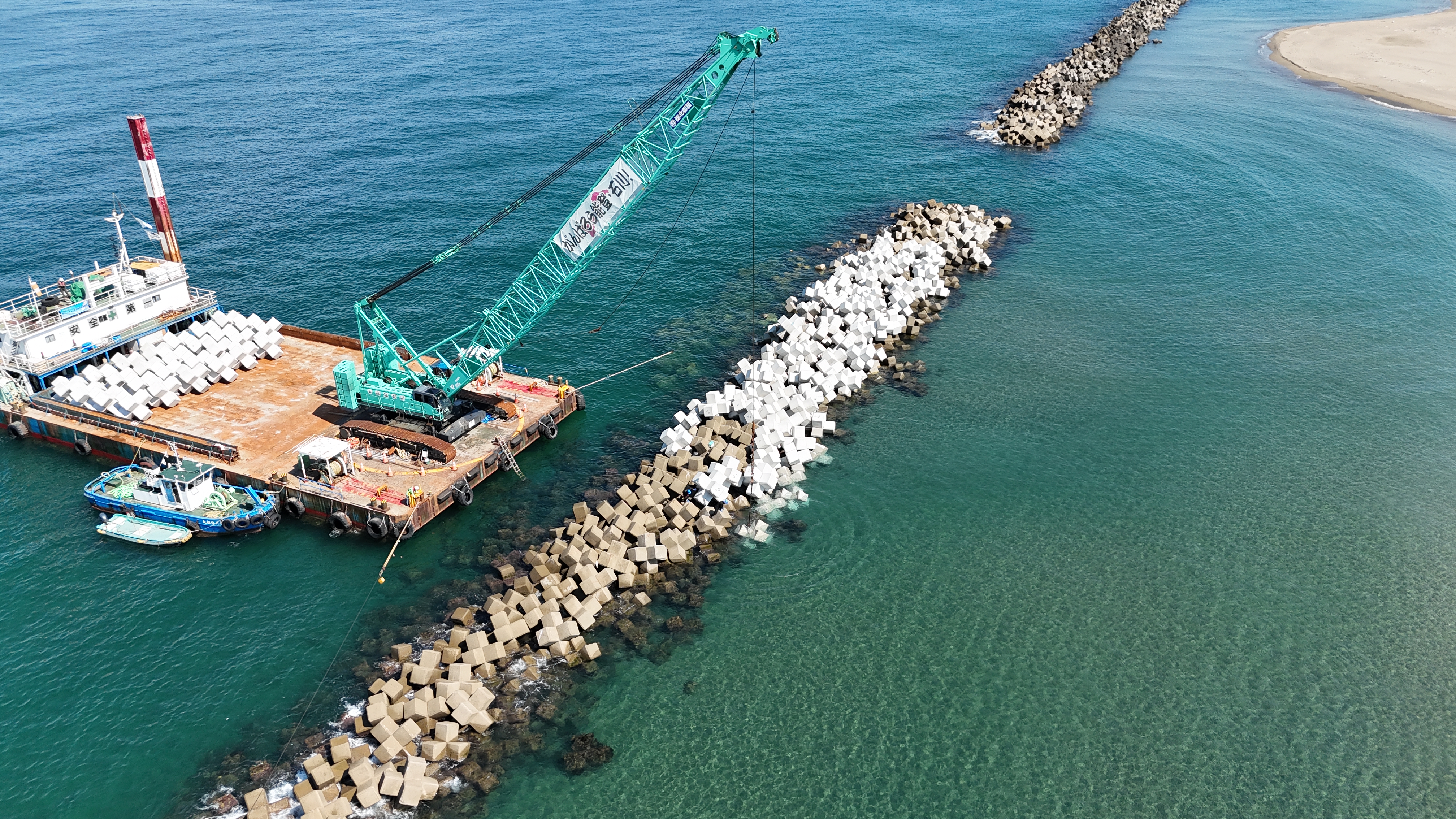 陸からでは届きにくい海の上の工事も