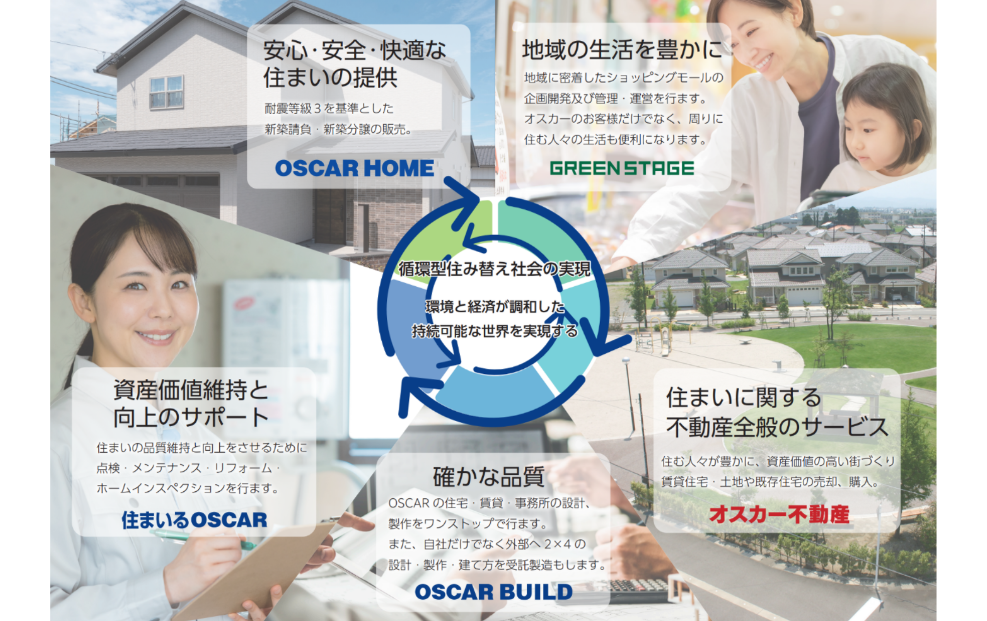私たちOSCARグループは、ライフステージの変化に合わせた住み替えを通じて、住宅が次の世代へと受け継がれていく「循環型住み替え社会の実現」を企業理念に掲げ、日々の業務に取り組んでいます。